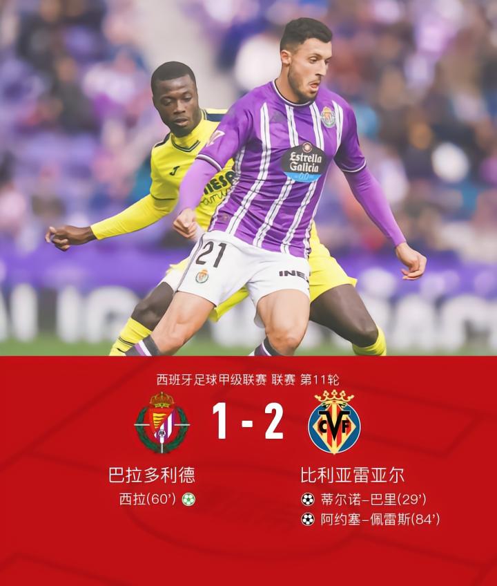 比利亚雷亚尔客场2-1巴拉多利德,巴里破门,佩雷斯绝杀