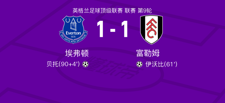 北京时间10月27日埃弗顿vs富勒姆,伊德里萨-盖伊得到全场最高的7.7分,豪尔赫-昆卡得到全场最低的5.7分
