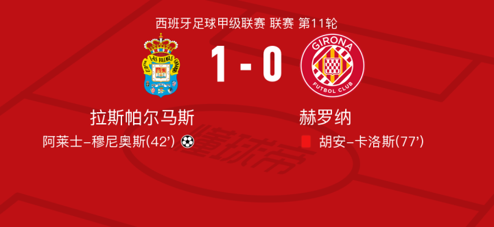 北京时间10月27日拉斯帕尔马斯vs赫罗纳,阿莱士-穆尼奥斯得到全场最高的8.0分,金民洙得到全场最低的5.5分