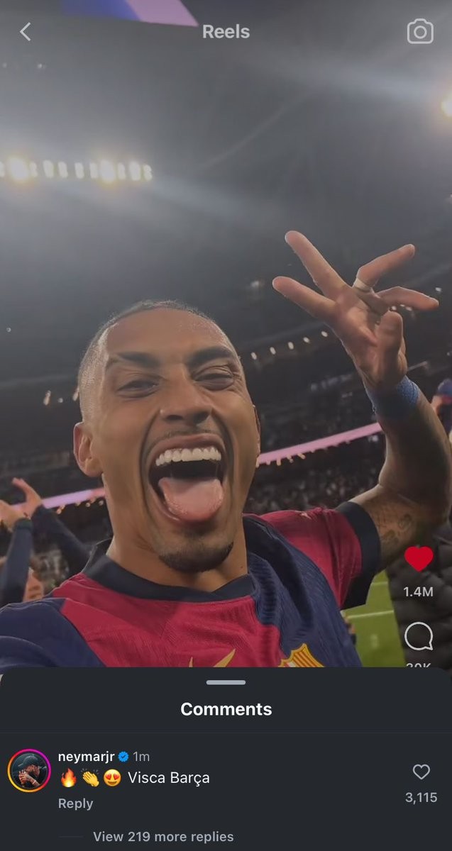 内马尔曾于2013年-2017年效力于巴萨,如今在巴塞罗那官方的评论区下,内马尔评论:“巴萨万岁!”