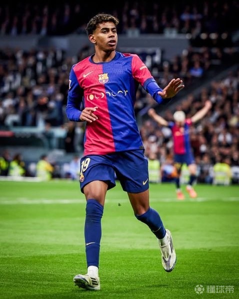此役客场对阵皇马,亚马尔在比赛第77分钟破门,斩获国家德比首秀,成为在西班牙国家德比进球最年轻的球员。