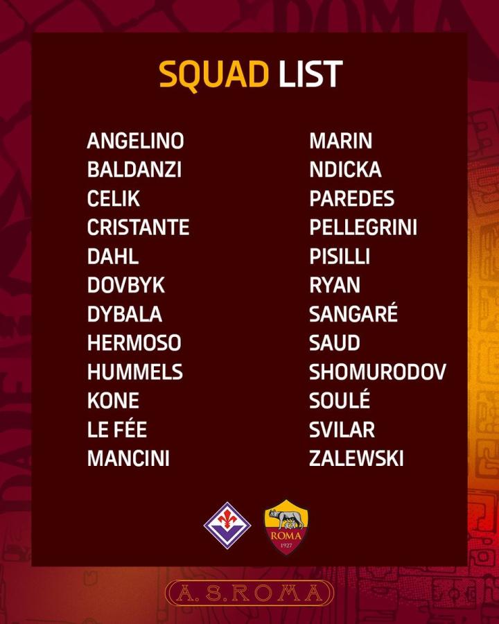 北京时间周一凌晨03:45,罗马将会在意甲第9轮的比赛中做客挑战佛罗伦萨,赛前伊万-尤里奇公布了红狼此战的大名单,迪巴拉领衔,胡梅尔斯入选,萨勒马克尔斯和沙拉维则继续因伤缺阵。