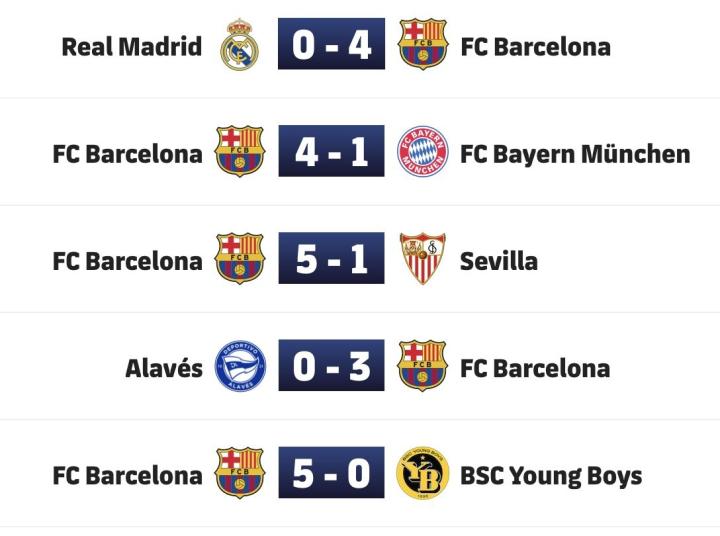 西甲第11轮,巴萨客场4-0大胜皇马,以一场国家德比大胜为10月份赛程完美收官,巴萨10月份5场比赛全部取胜,总比分为21-2。
