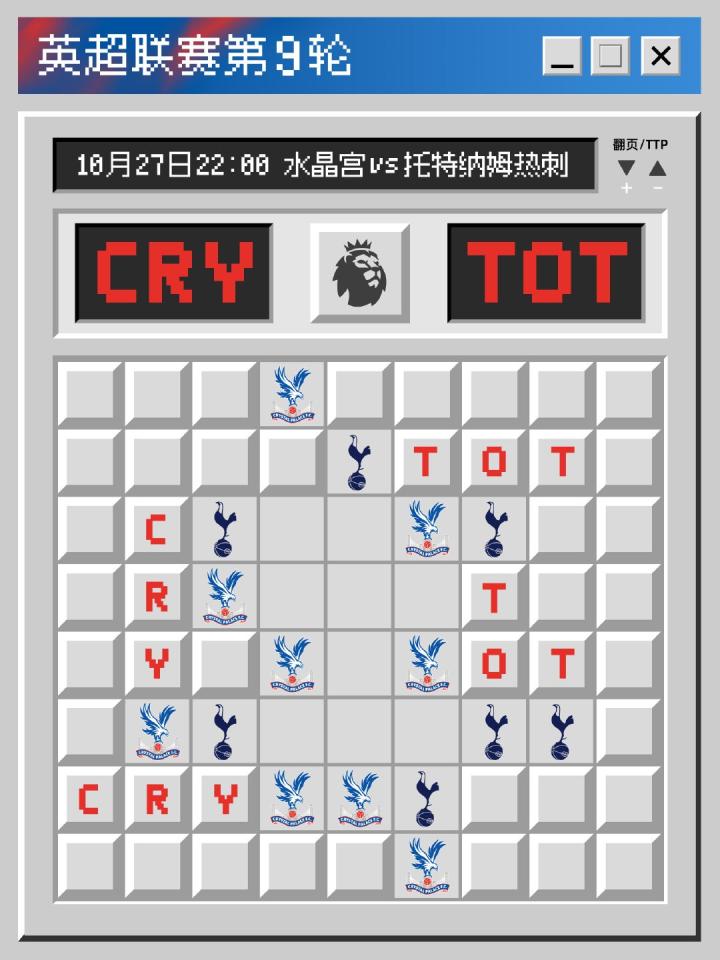 北京时间10月27日晚22:00,英超联赛第9轮,水晶宫将坐镇主场迎战托特纳姆热刺。