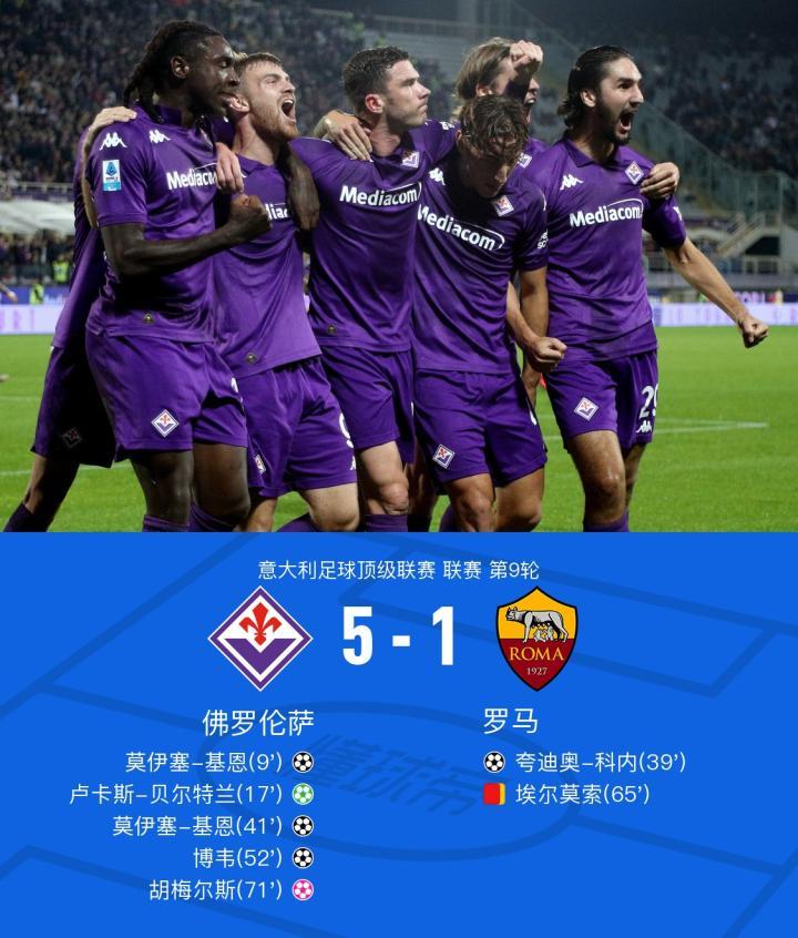 罗马1-5佛罗伦萨,胡梅尔斯首秀自摆乌龙,基恩双响博韦传射
