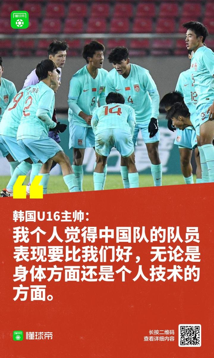 U17亚洲杯预选赛的比赛中,中国U16国少以2-2的比分战平韩国U16。赛后,韩国U16主帅白基泰表示,中国国少的发挥好于韩国国少。