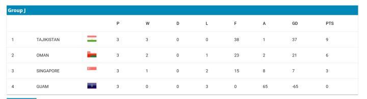 三轮比赛过后,关岛U16国少三战全败,打进0球丢65球,净胜球为-65。