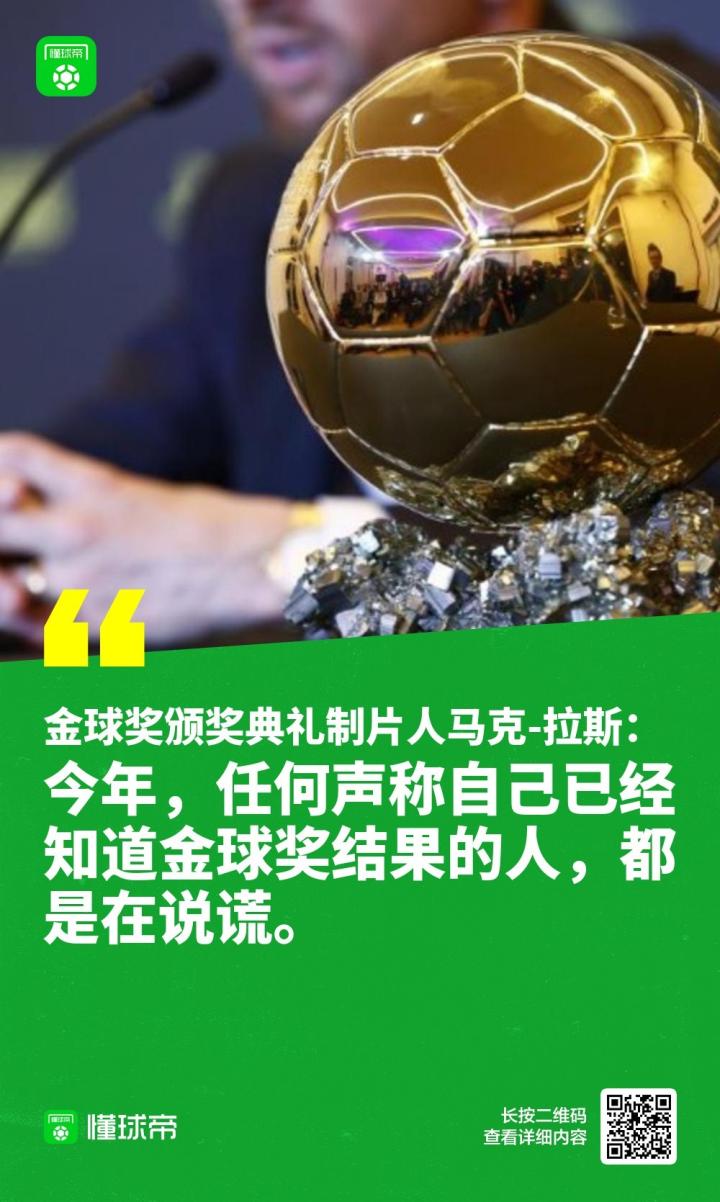 “我们在几个月前就通知了他们,事实上,有些人打着俱乐部的幌子试着探知谁是金球奖得主……我感觉到压力在逐渐上升,一些随行人员在寻找线索,但我告诉他们,我们已经重新定义了规则,并会严格遵守。”