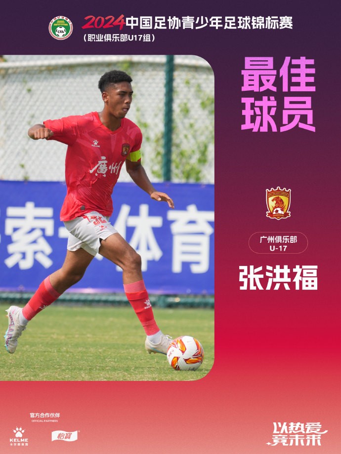 北京时间10月28日,U17联赛官方宣布,广州队中卫张洪福当选本届赛事最佳球员。