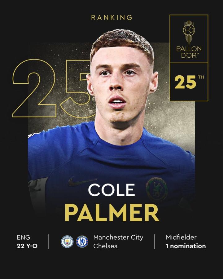 2024年金球奖排名陆续公布,切尔西攻击手帕尔默排名第25,切尔西官方送上祝贺,表示这仅仅是开始。