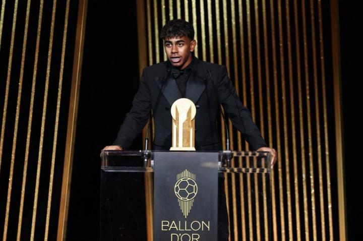 亚马尔表示:“大家晚上好,这对我来说是一种荣誉,我要感谢我的母亲、父亲和祖母,他们一直帮助着我。同时,我还要感谢我的队友、巴萨和国家队的工作人员,还有德拉富恩特、哈维和弗里克。”