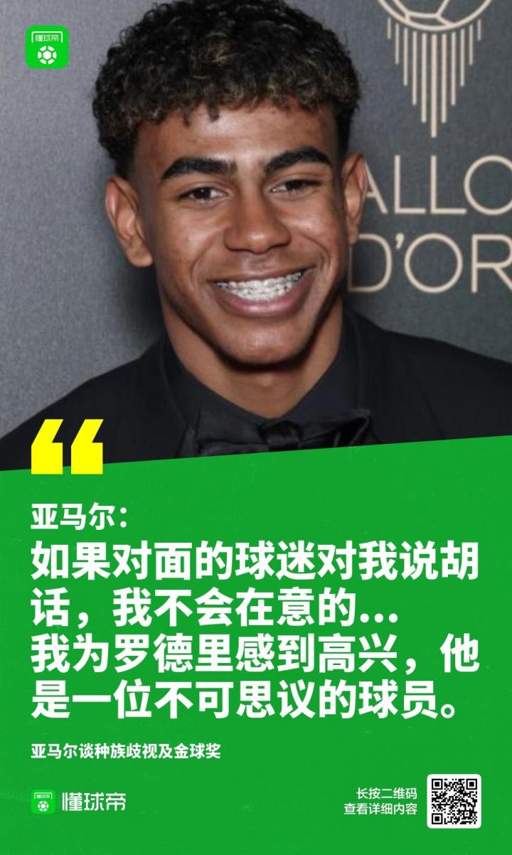 亚马尔说道:“我是在球场上比赛的人,我是庆祝进球的人,如果对面的球迷对你说胡话,我不会在意的。相反,当他们这样说时,这意味着你做得很好。”