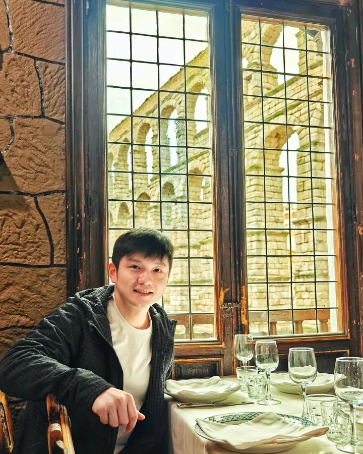 乒乓球奥运冠军樊振东更新个人社媒,他晒出了自己前往西班牙塞哥维亚吃饭的照片。