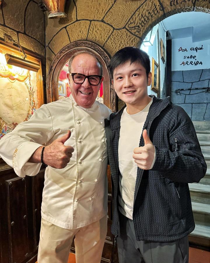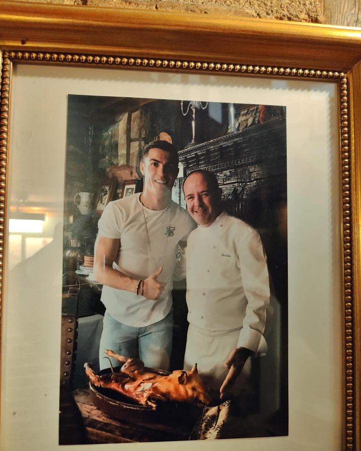作为一名铁杆皇马球迷,樊振东晒出的是C罗曾去过的烹饪烤乳猪的餐馆,他配文写道:“十几年前罗总吃乳猪的百年老店🍽️ Yummy indeed(确实好吃)👍🏻”