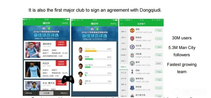 在论文中提到曼城在社交媒体的关注度时,罗德里加入了懂球帝16/17赛季曼城最佳球员评选以及曼城圈子帖子数和关注数三张截图,并写道:“曼城是第一家和懂球帝签约的豪门俱乐部,曼城在懂球帝共有530万多粉丝,是关注人数增长最快的球队。”