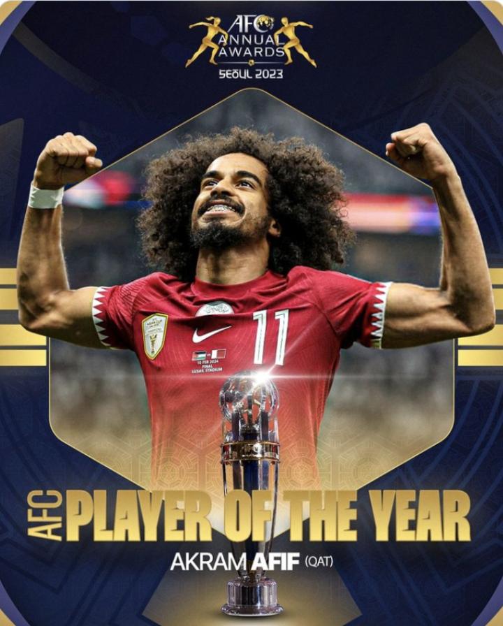 亚足联官方表示:“卡塔尔之星再一次闪耀。在2023年,阿菲夫帮助卡塔尔队连续第二次夺得亚洲杯冠军。他也成为了第一位连续两次当选亚足联年度最佳球员的卡塔尔人!”