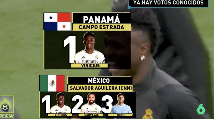 西班牙六台透露了墨西哥和巴拿马记者的金球奖投票顺序,维尼修斯均位列第一位。