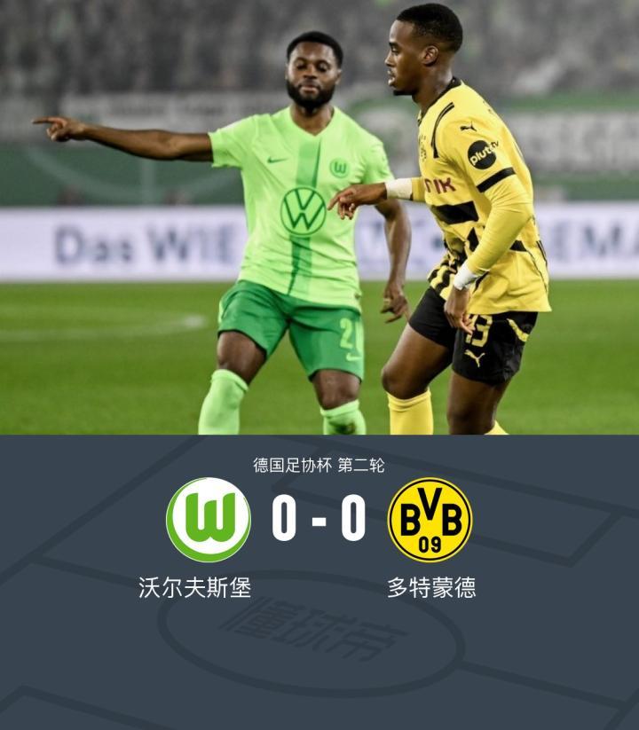 90分钟战报:沃尔夫斯堡0-0多特,双方难分伯仲进入加时赛