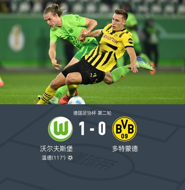 德国杯沃尔夫斯堡1-0多特晋级,温德绝杀,裁判判罚引争议