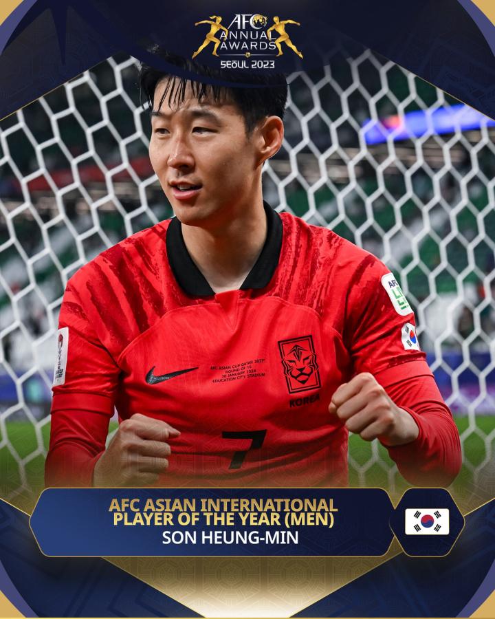 10月29日晚,亚足联年度最佳颁奖典礼在韩国举行,韩国球员孙兴慜获得2023年度最佳球员。