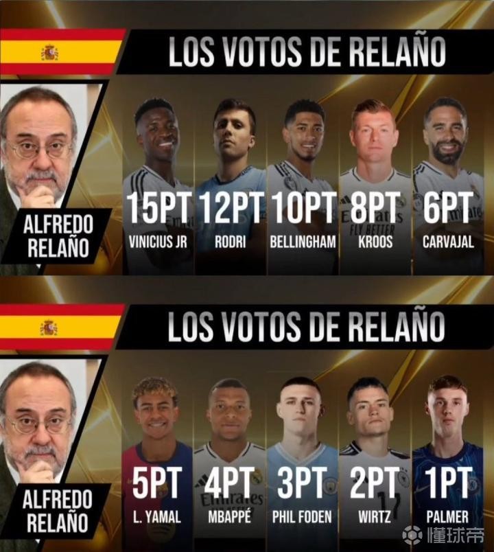 在2024金球奖的颁奖典礼中,罗德里击败维尼修斯成为了最新一届金球奖的获得者。最近几天,各国记者的投票情况也陆续揭晓,其中最引人注目的则是西班牙记者Alfredo Relaño的投票顺序。