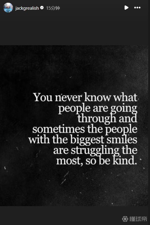 北京时间10月30日,格拉利什更新了社媒动态,表示笑得最开心的人有时候最挣扎,因此需要保持友善。