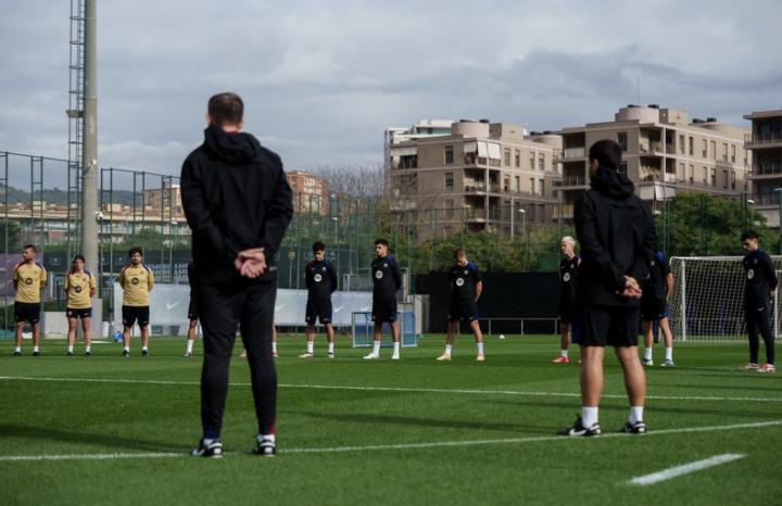 在巴塞罗那今日训练前,巴萨全队为瓦伦西亚气象灾害的遇难者默哀一分钟。