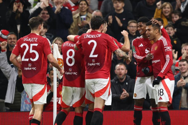 英格兰联赛杯第四轮的一场较量中,曼联在上半场结束后暂时主场4-2领先莱斯特城。