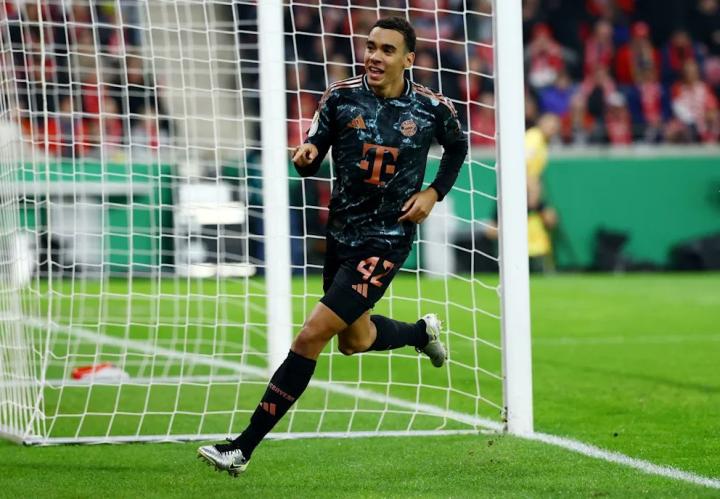 在与美因茨的德国杯比赛中,穆西亚拉上半场打入三球,职业生涯首次上演帽子戏法。