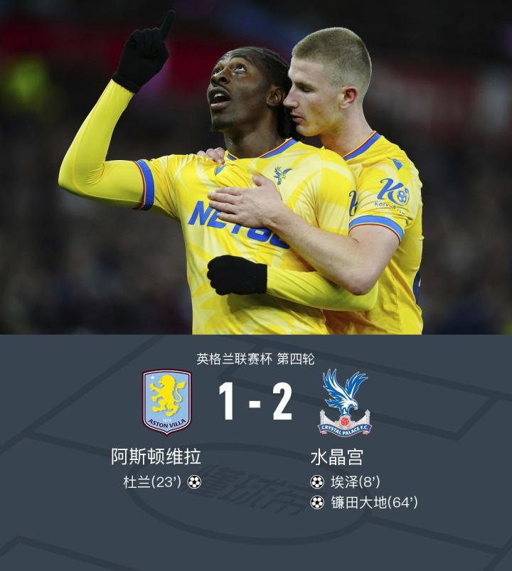 英联杯水晶宫2-1客胜维拉晋级,镰田大地破门,埃泽头槌建功