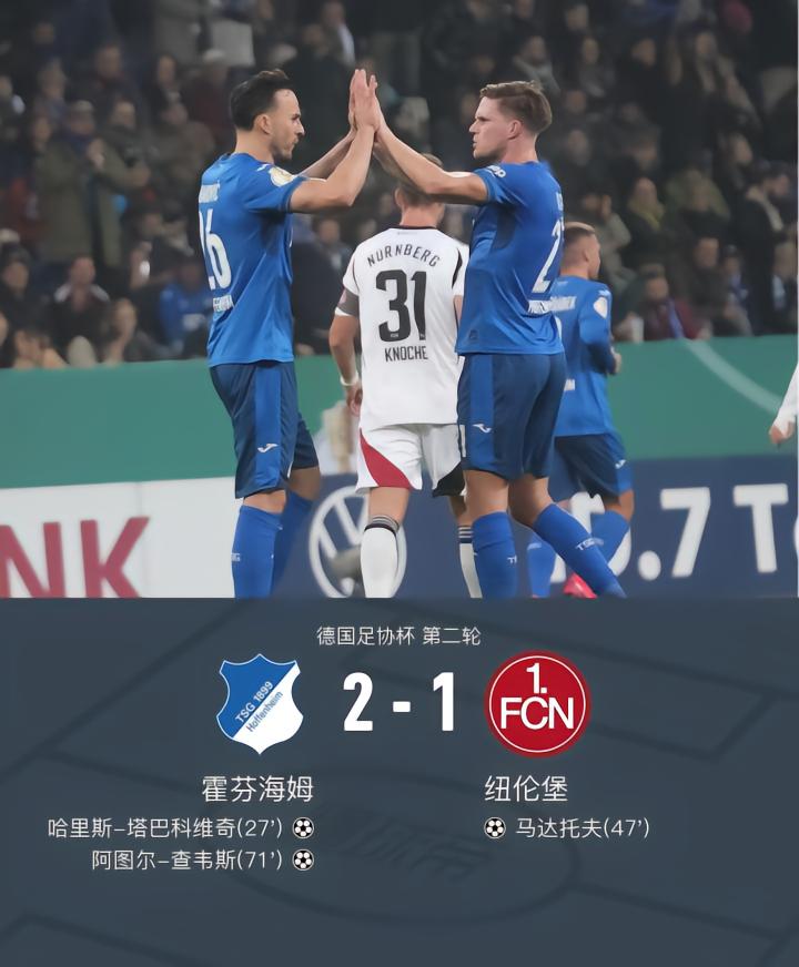 霍芬海姆2-1纽伦堡,哈里斯-塔巴科维奇、阿图尔-查韦斯破门