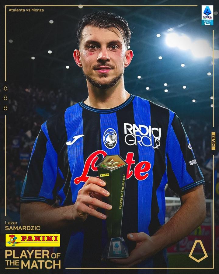 在意甲第10轮的比赛中,亚特兰大在主场2-0击败了蒙扎,赛后此战替补出场并贡献一传一射的拉扎尔-萨马尔季奇被意甲官方评为了本场比赛的最佳球员。