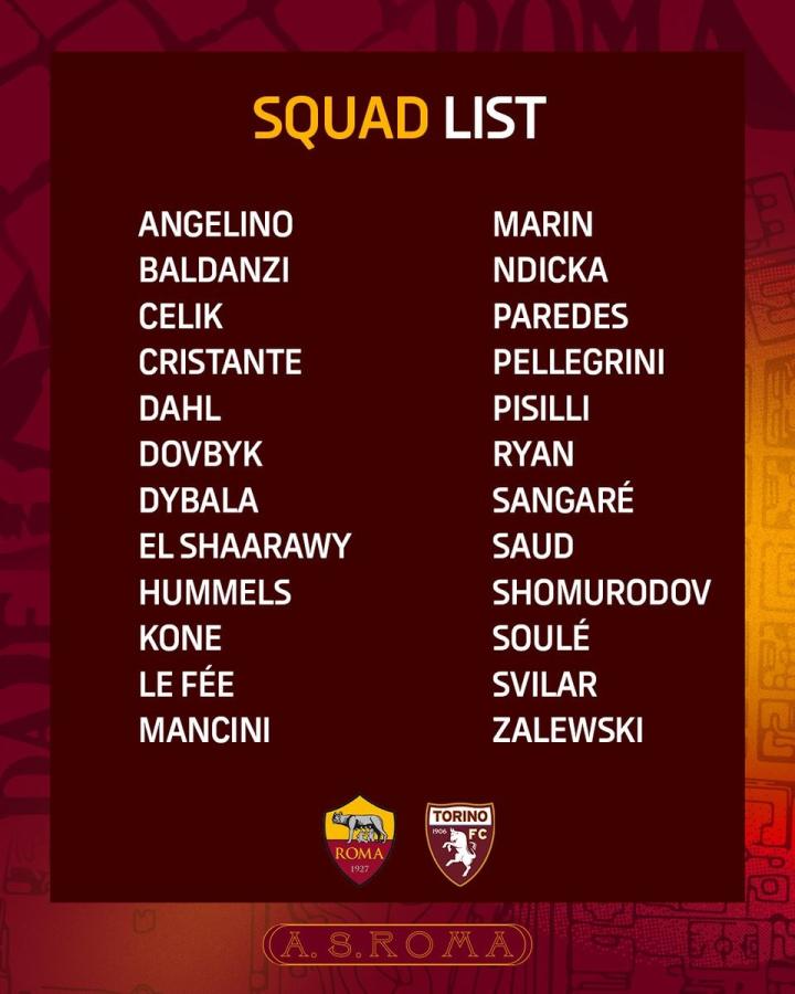 北京时间周五凌晨03:45,近3轮不胜且2连败的罗马将会在意甲第10轮的比赛中坐镇主场迎战都灵,赛前伊万-尤里奇公布了红狼本场比赛的大名单,沙拉维回归,埃尔莫索停赛缺席。