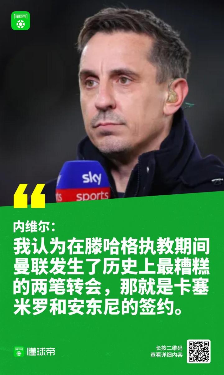 加里-内维尔日前在节目上谈到了滕哈格下课的话题,他认为球迷不会忘记他带来的两座奖杯,但是球队签下卡塞米罗和安东尼实在太糟糕,堪称队史最糟糕的两笔转会。