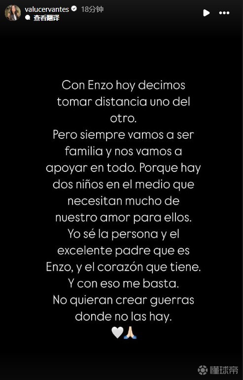 瓦伦蒂娜写道:“今天,我和恩佐决定彼此保持距离,但我们始终是一家人,会在一切事情上相互支持。因为在我们之间有两个孩子,他们非常需要我们的爱。”