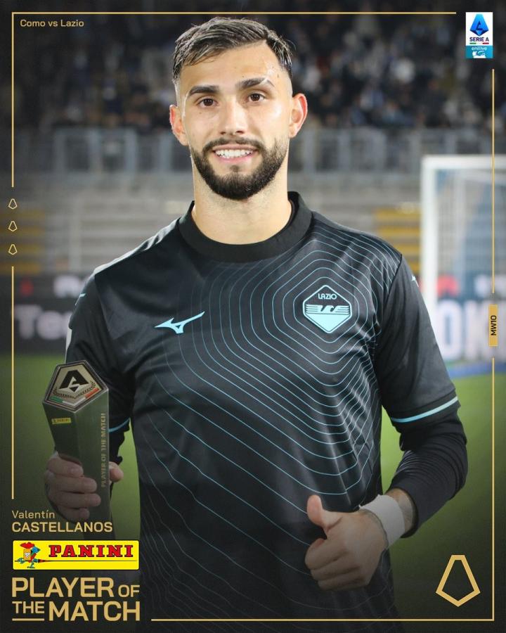 在意甲第10轮的比赛,拉齐奥在客场5-1大胜升班马科莫,蓝鹰前锋卡斯特利亚诺斯完成梅开二度,赛后这位阿根廷国脚也被意甲官方评为了本场比赛的最佳球员。