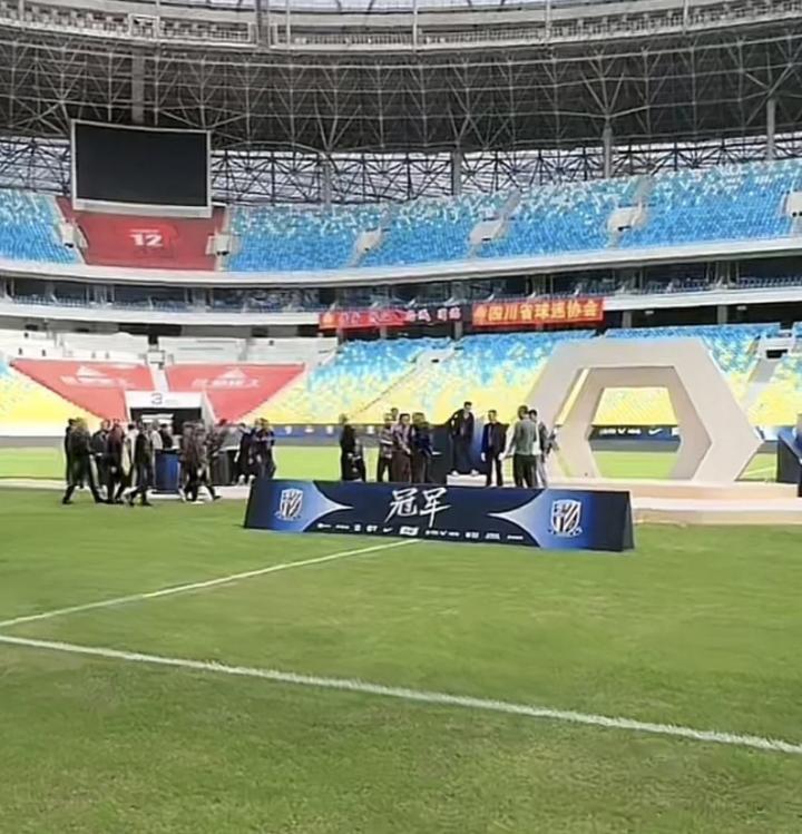 中超收官战将于明日开启,赛前一天成都凤凰山体育场进行了上海申花中超夺冠的彩排。