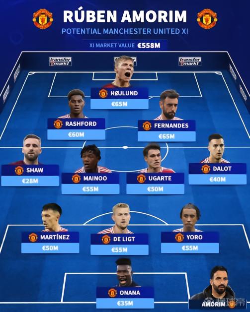 曼联官方宣布任命阿莫里姆为球队新任主帅。德国转会市场网站预测了阿莫里姆治下曼联首发阵容,利桑德罗、德利赫特、约罗搭档三中卫,霍伊伦突前。