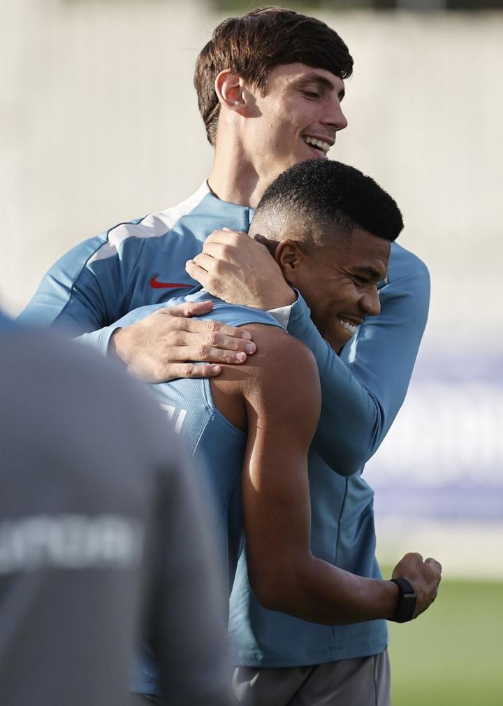 当地时间11月1日,马竞官方晒照,此前头部受伤的勒诺尔芒现身训练场。