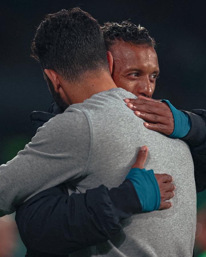 葡超第10轮葡萄牙体育主场对阵阿马多拉之星赛前,即将前往曼联执教的阿莫里姆与曼联旧将纳尼拥抱致意。