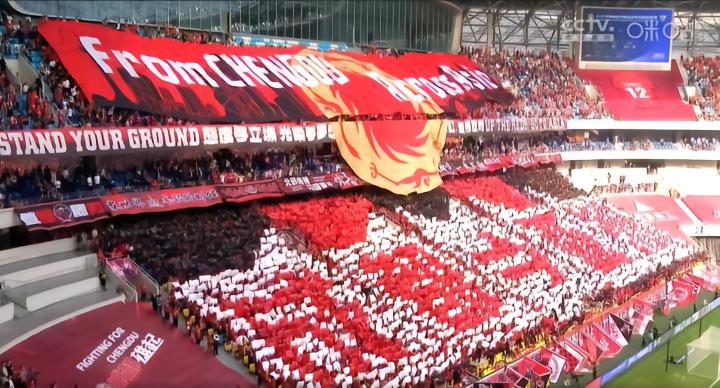 本场比赛,在成都蓉城著名的刀锋看台,球迷打出了巨幅的红白色TIFO,上面用红色的字体打出了“成都→亚洲”的字样。