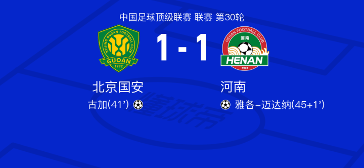 北京时间11月2日北京国安vs河南,古加得到全场最高的7.9分,杨意林得到全场最低的6.2分