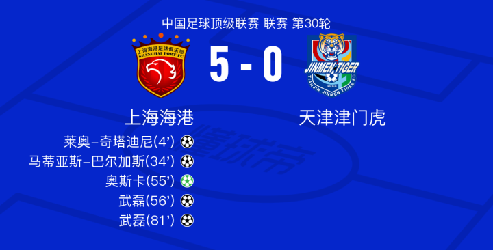 北京时间11月2日上海海港vs天津津门虎,武磊得到全场最高的10分,巴顿得到全场最低的5.8分