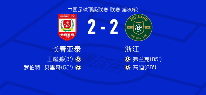 北京时间11月2日长春亚泰vs浙江,岳鑫得到全场最高的8.1分,田玉达得到全场最低的6.3分