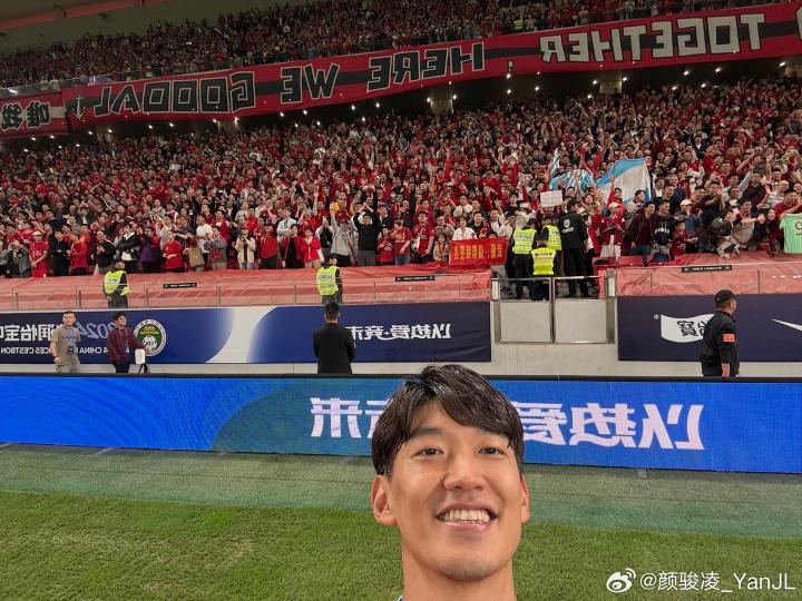 此外,颜骏凌还晒出他和看台球迷的自拍合照。