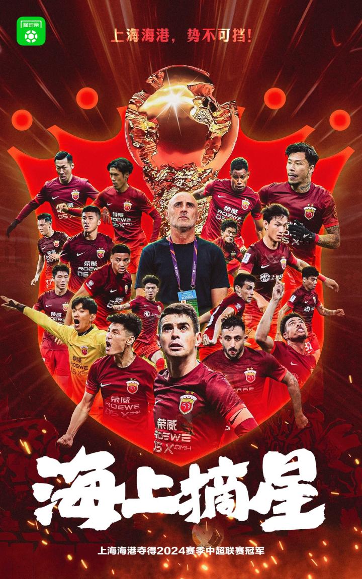 今天下午,上海海港队在主场5比0战胜天津津门虎,继2023赛季摘得中超联赛桂冠后,于本赛季蝉联了该项赛事的冠军,赢得队史第三座火神杯的同时,也如愿,为队徽缀上了珍贵的又一颗星。