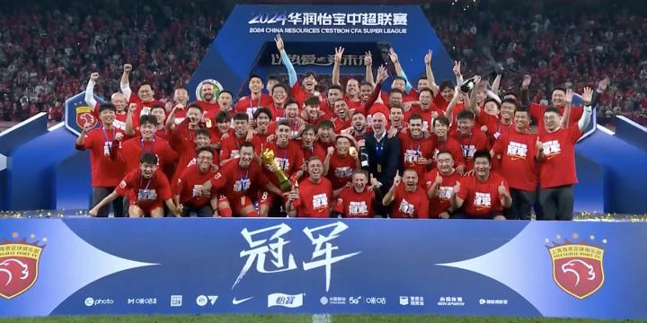 2024年中超收官战,上海海港主场5-0大胜天津津门虎,以78分成功卫冕中超冠军,夺得队史第三座中超冠军,他们此前曾在2018年和2023年捧起过火神杯。