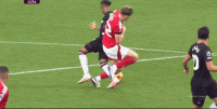第32分钟,萨默维尔起身时,脚踢到耶茨头部