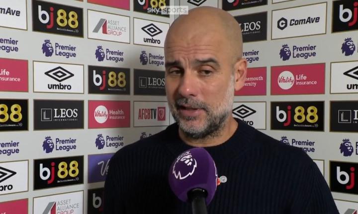 在今天晚上进行的英超第10轮比赛中,曼城客场1-2不敌伯恩茅斯,赛后,瓜迪奥拉在接受天空体育的采访时谈到了自己对比赛的看法。