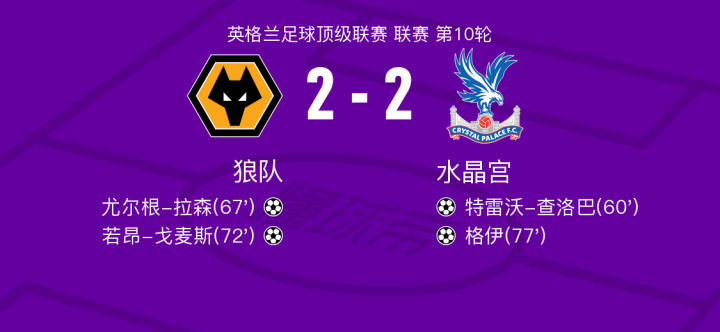 北京时间11月3日狼队vs水晶宫,马特乌斯-库尼亚得到全场最高的8.2分,萨拉维亚得到全场最低的6.0分
